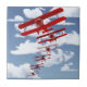 Vintage Doppeldeckerkunst erinnernd von den Zwanziger Jahren, Dreißigerjahre, Vierziger, retro Art.-Bildungsflug der Doppeldecker im hellen blauen Himmel.