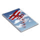 Vintage Doppeldeckerkunst erinnernd von den Zwanziger Jahren, Dreißigerjahre, Vierziger, retro Art.-Bildungsflug der Doppeldecker im hellen blauen Himmel.