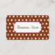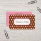 Rosa und cremefarbene Punkte auf braunem Hintergrund verleihen diesem Retro-Stil der Visitenkarte. Passen Sie diese Visitenkarte an, um Ihre Bedürfnisse zu erfüllen, indem Sie die Informationen ändern. Nutzen Sie diese niedlichen Visitenkarten für eine Bäckerei, Boutique, ein Geschäft, einen Eisladen, einen Schokoladenhändler, eine Tagesstätte, eine Schule, eine Vorschule, einen Salon, eine Kinderbetreuung usw...Die Entwürfe stammen aus der Originalkunst.