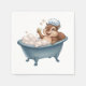 Retro Eichhörnchen Baby Dusche Napkin. Das Eichhörnchen aus Cartoon mit Duschhaube ist in einer Retro-Badewanne untergebracht, umgeben von Blasen, und tut so, als wäre es eine Berühmtheit im Urlaub.