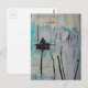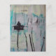 Retro Ein Boot und ein Vogel Schwarz Weiß Blau Postkarte