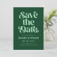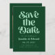 Retro und elegante Save the Date Karte mit boho Schriftart, der "Save the Date" in smaragdgrün sagt. Sie können ein Foto auf der Rückseite hinzufügen.