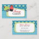 © Persönlichkeit des öffentlichen Lebens-Entwürfe 2012. Unsere coolen und einzigartigen Retro-ähnlichen Bäckereigeschäftskarten sind sicher, ein Schlag mit Ihren Kunden zu sein. Die Visitenkarte enthält zwei kleine Kuchen und Retro Entwurfselemente und -muster. Alle Entwurfselemente können oder auf Anzug verschoben werden, die Größe neu bestimmt werden Ihre Art für Ihr Geschäft gelöscht werden. Die Farben sind blau, grün, rosa, Rot und Grau.