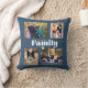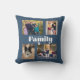 Dieses Foto Kollage Kissen ist ein perfektes Geschenk. Das Design besteht aus 4 Bildern und ist mit dem Wort "Familie" in einem lustigen Retrotext auf dunkelblauem Hintergrund akzentuiert. Personalisieren Sie Ihre Lieblingsbilder, Familienname und Jahr. Familienfotografie © Storytree Studios, Stanford, CA