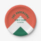 Retro Familienhaus Personalisierter Name Grün Rot Pappteller