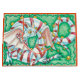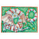 Diese Holiday Geschenktasche bietet ein reizvolles Vintage-Bild eines rot-weiß gestreiften Weihnachtsdrachen. Der Drache trägt goldene Steinglocken und einen gestreiften Bonbons in seinem Mund. Das Bild wird auf einem grünen Hintergrund mit einem dekorativen Rahmen und in Rot gerahmt. Beide Seiten der Tasche haben das gleiche Bild. Niedlich und einzigartig!