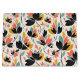 Eine große Geschenktasche im Retro-Farben-Design in Schwarz, Türkis, Gold und Orange, geformt in einem floralen Blattdesign