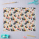 Ein buntes Seidenpapier, entworfen in Retro-Farben wie Schwarz, Türkis, Gold und Orange, geformt in einem floralen Blattdesign