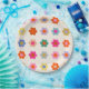 Retro Blume - Blumendruck - Farbige Kunst - rosa, orange, gelb, grün, blau und cremeweiß.