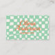 Wenn Sie eine perfekte und einzigartige Visitenkarte suchen, ist diese für Sie!! Ein einzigartiges und Retro-böhmisch-schicke, grüne trendige, helle, fette Visitenkartenvorlage. Mit einem schlichten, hellen Hintergrund mit einem eleganten, einzigartigen Orangenskript-Schriftart und einem handgezeichneten grünen Schachbrettmuster. Mit Vintag handgeschriebenem Titel oder Berufsvorlage. Und hinten haben wir die handgezeichneten Social Media Icons mit anderen Infos als Website und Kontaktinformationen und personalisierbaren QR Code. Sie können es einfach und einfach anpassen, indem Sie in der blauen Schaltfläche Personalisieren klicken und dann die Informationen ändern. Wofür du gewartet hast!! Greifen Sie und wir garantieren Ihnen die phantastische Qualität und den schnellen Versand.