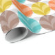 Inspiriert durch schöne Retrofarben, hat dieses Polodot Farbmuster Orange, Senfgelb, Braun, Türkisblau und Weiß.