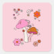 Retro-farbige Pilze und Blume rosa Quadratischer Aufkleber