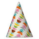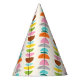 Fühlen Sie Ihr Nest mit diesem Retro farbenfrohen Nester Party Hut! Das Design zeichnet sich durch einen cremefarbenen Hintergrund mit goldenen Falten und Reihen wunderbar kitschiger, farbenfroher Halbkreise aus, die sich auf minimalistischen, schwarzen Ästen ruhen. Die Halbkreise ähneln Märchen, Vogelnesten in hellblauen, aquamarinen, türkisfarbenen, orangen, rosa, gelben, grünen, grauen und braunen Tönen. Die orangefarbenen Nester haben ein lustiges Ziegelmuster und die braunen Nester sind mit einem Cartoon-Holzkorn versehen. Die nestgefüllten Bäume wechseln sich von rechts nach oben und von oben nach unten ab, was bedeutet, dass dieses skurrile Design sogar perfekt aussieht, wenn man auf dem Kopf stehend ist. Dieses Muster erinnert an ein Vintages modernes Design aus der Mitte des Jahrhunderts. Sie werden sicher unsere Hommage an die 50er Jahre genießen. Kaufen Sie das heute und seien Sie die coolstste Katze auf Ihrem Block.