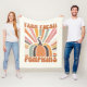 Dieses lebhafte und inspirierte Herbstdesign hebt den Begriff "Farm Fresh Pumpkins" in fett gedruckter, spielerischer Typografie hervor, die sofort Aufmerksamkeit erregt. Im Mittelpunkt des Designs steht ein großer, stylisierter Kürbis, der in warmen Orange-, Braun- und Cremetönen dargestellt ist. Der Kürbis wird von einem farbenfrohen Lichtstrahl gerahmt, der sich nach außen hin ausdehnt und eine Palette von gedämpften Orangen, Rosa, Gelb und Grüntönen umfasst, die dem Design ein nostalgisches, Vintages Gefühl verleihen. Die Kombination aus Sonnenburstmuster und dem grobkörnigen, kurvigen Schriftart verleiht dem Kunstwerk ein unterhaltsames und kraftvolles Ambiente, das perfekt zum Festhalten am Herbst geeignet ist.