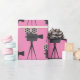Das perfekte Packpapier für Film- und Kinoliebhaber! Retro-Stil Stativ Film-Kamera Muster auf rosa Hintergrund.