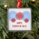 Spaß und funky Retro Fireworks Premium Square Ornament mit fett und einzigartigen Feuerwerk Grafiken in rot und hellblau. Dieses coole Ornament würde einen schönen Sake oder Dekoration machen, wenn es mit dem Text Ihrer Wahl angepasst wird!