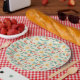 Papierplatte - Vintage-inspirierte Poolside-Szene mit rosa Flamingos, Liegestühlen, Cocktails und sonniger Atmosphäre in einer retro Sommer-Ästhetik. Ideal für Strandliebhaber, Urlaubsfans und diejenigen, die lustige, nostalgische Designs genießen.