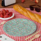 Papierplatte - Vintage-inspirierte Poolside-Szene mit rosa Flamingos, Liegestühlen, Cocktails und sonniger Atmosphäre in einer retro Sommer-Ästhetik. Ideal für Strandliebhaber, Urlaubsfans und diejenigen, die lustige, nostalgische Designs mögen.