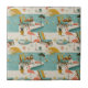 Keramikfliese - Vintage-inspirierte Poolside-Szene mit rosa Flamingos, Liegestühlen, Cocktails und sonniger Atmosphäre in einer retro Sommer-Ästhetik. Ideal für Strandliebhaber, Urlaubsfans und diejenigen, die lustige, nostalgische Designs genießen.