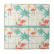 Ceramic Tile - Vintage-inspired poolside scene with pink flamingos, lounge chairs, cocktails, and sunny vibes in a retro summer aesthetic. Ideal for beach lovers, vacation fans, and those who enjoy fun, nostalgic designs.