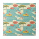 Ceramic Tile - Vintage-inspired poolside scene with pink flamingos, lounge chairs, cocktails, and sunny vibes in a retro summer aesthetic. Ideal for beach lovers, vacation fans, and those who enjoy fun, nostalgic designs.