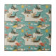Ceramic Tile - Vintage-inspired poolside scene with pink flamingos, lounge chairs, cocktails, and sunny vibes in a retro summer aesthetic. Ideal for beach lovers, vacation fans, and those who enjoy fun, nostalgic designs.