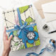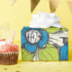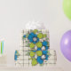 Heitere blaue Blumen mit hellgrünen Blättern auf cremefarbenem Fliesenraster-Hintergrund. Dieses vintage-inspirierte Muster kombiniert kühne grafische Blumen mit einer abgenutzten Fliesentextur für ein Retro-Küchen- oder Cottage-Stil-Gefühl. Die frische blau-grün-cremefarbene Palette bringt Frühlingsenergie, perfekt für Gartenpartys, Küchengeschenke und nostalgische Designs.