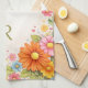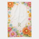 Retro Floral colorful Mongoram kitchen towel. Orange, pink green and icy blue. Initial.
