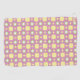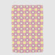 Towels with a retro floral pattern hang on a rod. The design features yellow circles on pink, accented by starburst shapes, evoking a playful vintage vibe.