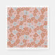 Ein nahtloses Retro-Blumenmuster mit kühnen Blume in Orange-, Pfirsich- und Blautönen auf einem hellrosa Hintergrund, perfekt für Vintag inspirierte Designs.