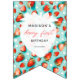 Suchen Sie nach einer Dekoration zum ersten Geburtstag? Schauen Sie sich unsere Retro Floral Strawberry Niedlich Berry 1. Geburtstag Jagdfahnen! Die blauen und aquamarinen Wände sind mit blauen Erdbeeren und weißen Blume geschmückt und sorgen für ein angenehmes Retro-Ambiente. Ideal für ein Erdbeerthema 1. Geburtstag Party, das den Ton für einen fröhlichen und farbenfrohen Tag setzt. Schöne Erdbeere Thema Geburtstag Dekoration!