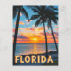 Retro Florida Küstenlandschaft: Palmen und Golden Postkarte