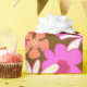 Craft or wrapping paper with big, retro flowers art design. Pink, orange and off-white, hand drawn floral pattern printed over a golden brown. High quality paper comes on a roll in your choice of length.