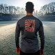 This stunning vintage-style poster beautifully encapsulates the fierce energy and unbridled passion of soccer. At its center, a dynamic footballer dons a striking red and black striped jersey, soaring through the air in an exhilarating leap to execute a dramatic header. The athlete's muscles are tense with determination, embodying the spirit of the game. Behind him, bold sunburst rays radiate outward, enveloping the scene in vibrant retro hues of deep crimson, classic black, and creamy tones, creating a breathtaking backdrop that amplifies the intensity of the moment.