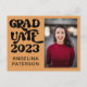 Feiern wir diesen speziellen Absolventen mit dieser mutigen, einzigartigen und modernen Vorlage. Die Wörter Graduate 2023 sind in übergroßen Retro Typografie in schwarz auf einem Terrakotta Hintergrund. Das Foto erscheint auf der Vorderseite und alle Ihre Party-Details sind elegant auf der Rückseite mit "Let's Celebrate the Graduate" in großen Retro-Skript platziert. Passen Sie dieses Design mit Ihren eigenen einzigartigen Informationen an, um eine atemberaubende Party Einladung zu erstellen.