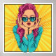 Pop Art Retro Frau werfen einen Kuss auf eine Comic-Seite