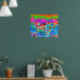 Ein abstraktes Sonnenblumengemälde von H Cooper in Blau und Rosa. Dieses trendige Retro-Gemälde wird jedem Zimmer einen tollen Brennpunkt verleihen! Verfügbar zum Personalisieren und sofort herunterladen.