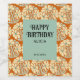 This retro groovy birthday wine label features an abstract daisy flower in a groovy funky trippy style, a seamless pattern on a brown background.