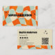 Mit dieser Retro-inspirierten Visitenkarte, die ein gewagtes, welliges Muster in lebhaften Orange-, aquamarin- und Cremetönen aufweist, heben Sie sich stilvoll ab. Das spielerische Layout verbindet eine funky ästhetische mit modernen Funktionen, inklusive Platz für Social Media Links und einen QR Code für den einfachen Zugang zu Ihrer Website oder Ihrem Portfolio. Ideal für Kreative, Einflusspersonen, Künstler oder Trend-erfahrene Profis, die einen kühnen ersten Eindruck machen möchten. Vollständig anpassbar an Ihre Marke.