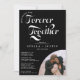 Gemeinsam für immer üben! Feiern wir unseren Lieblingspärenabend vor dem großen Tag mit diesem klassischen und eleganten Retro Vintage Kalligraphie Probe Dinner Script in klassisch elegantem Weiß auf schwarz mit einem gewölbten Foto auf der Seite. Wenn Retro auf moderne Touch trifft.