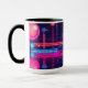 Dieses Retro-futuristische Kunstwerk vereint das Wesen der 1980er Jahre mit seinen lebhaften Farben, Neonlichtern und futuristischen Autos. Ideal, um eine Touch Nostalgie und Cyberpunk Stil zu Ihrer Zuhause hinzuzufügen oder als Geschenk für jemanden besonderen.