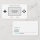 Eine Retro-Visitenkarte für Spielentwickler. Das Design zeigt ein einfaches Spielsystem mit einem kleinen Bildschirm, der Ihren Namen und Beruf auf der Vorderseite anzeigt. Auf der Rückseite finden Sie alle Kontaktdaten, einschließlich eines Social Media Handles.