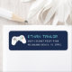 Beenden Sie die Einladungen für die Geburtstagsparty Ihres Kindes zum Thema Videospiel mit diesen coolen Retro-Rücksendeadressen-Aufklebern mit einem Videospiel-Controller auf marinebasischem Hintergrund mit Vintager digitaler Stilschrift.
