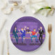 Dieses Retro Gay Bar Paper Plate Design ist lila, kitschig und absolut fabelhaft! Diese kleinen Herren sitzen auf modernen Barhockern aus der Mitte des Jahrhunderts und trinken ihren Spaß, ihre rosa Getränke. Sie haben eine gay-ol-Zeit. Der unanständige Barkeeper mit einem rosa Schlips strömt bereits in die nächste Runde. Die Silhouetten der Spirituosenflaschen reihen sich an die Wand, und die Vintage Lichthalterung aus den 60er Jahren hängt seitlich ab. Das einzige, was gerade an dieser Bar ist die Bar!