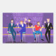 Dieses Retro Gay Bar Sticker Design ist lila, kitschig und absolut fabelhaft! Diese kleinen Herren sitzen auf modernen Barhockern aus der Mitte des Jahrhunderts und trinken ihren Spaß, ihre rosa Getränke. Sie haben eine gay-ol-Zeit. Der unanständige Barkeeper mit einem rosa Schlips strömt bereits in die nächste Runde. Die Silhouetten der Spirituosenflaschen reihen sich an die Wand, und die Vintage Lichthalterung aus den 60er Jahren hängt seitlich ab. Das einzige, was gerade an dieser Bar ist die Bar!