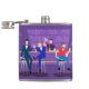 Dieses Retro Gay Bar Vinyl Wrapped Flask Design ist lila, kitschig und absolut fabelhaft! Diese kleinen Herren sitzen auf modernen Barhockern aus der Mitte des Jahrhunderts und trinken ihren Spaß, ihre rosa Getränke. Sie haben eine gay-ol-Zeit. Der unanständige Barkeeper mit einem rosa Schlips strömt bereits in die nächste Runde. Die Silhouetten der Spirituosenflaschen reihen sich an die Wand, und die Vintage Lichthalterung aus den 60er Jahren hängt seitlich ab. Das einzige, was gerade an dieser Bar ist die Bar!