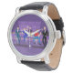 Dieses Retro Gay Bar Watch Design ist lila, kitschig und absolut fabelhaft! Diese kleinen Herren sitzen auf modernen Barhockern aus der Mitte des Jahrhunderts und trinken ihren Spaß, ihre rosa Getränke. Sie haben eine gay-ol-Zeit. Der unanständige Barkeeper mit einem rosa Schlips strömt bereits in die nächste Runde. Die Silhouetten der Spirituosenflaschen reihen sich an die Wand, und die Vintage Lichthalterung aus den 60er Jahren hängt seitlich ab. Das einzige, was gerade an dieser Bar ist die Bar!
