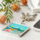 This Retro Gay Pool Party Keychain design feature four hunky beefcakes having a gay old time as they beat the Palm Springs heat by lounging around the turquoise blue water of their atomic boomerang shaped swimming pool. The mid century modern architecture on the fabulous, orange house is clearly prime real estate, given the view of the mountains in the background. A yellow starburst sun shines brightly in the turquoise sky you are able to see every charming detail—from the kitschy, pink flamingos to the 1950's striped, breezy blocks fence. And of course what Palm Springs House would be complete without a palm tree?