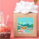 Dieses Retro Gay Pool Party Sticker Design verfügt über vier grobkörnige, schwul-zeitliche Beefcakes, die die Hitze der Palm Springs durch das türkisblaue Wasser ihres atomar geboomerang geformten Schwimmbeckens schlagen. Die moderne Bauweise des herrlichen orangefarbenen Steinhauses ist angesichts der Aussicht auf die Berge im Hintergrund eindeutig das beste echte Anwesen. Eine gelbe Sternexplosion strahlt hell im türkisblauen Himmel, sodass Sie jedes charmante Detail sehen können - von den kitschigen, rosa Flamingos bis hin zu den gestreiften, kuscheligen Häusern der 50er Jahre. Und natürlich, was Palm Springs House wäre komplett ohne eine Palme?