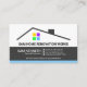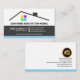 Ein Retro-Säulendesign in den Farben Weiß, Dunkelgrau und Blau. Oben befindet sich eine Zuhause auf dem Dach mit einem bunten Fenster. Unter diesem Motiv befindet sich der Firmenname. Die entsprechende dunkelgraue Ebene hat auf der links einen Namen und einen Jobtitel. Über die vertikale weiße Linie liegen Telefon, E-Mail und Adressdaten in ihren jeweiligen Schaltflächen. In der Nähe der Basis ist die Slogan-Beschriftung "Call me for a free quoation", können Sie die Beschriftung ändern, um Ihren Service-Anforderungen Anzug. Hinter dem Bild befinden sich die Details an der rechten Wand, mit einem goldenen Logo an der Spitze, gefolgt von Ihrem renommierten Namen, Kontaktdaten und einem Slogan zur Bekanntmachung Ihrer Dienstleistungen. Ein hellblauer Streifen kapselt die Basis. Eine Karte für Bauthemen. #handyman #construction #buildingtrading #homerepair #tragner
